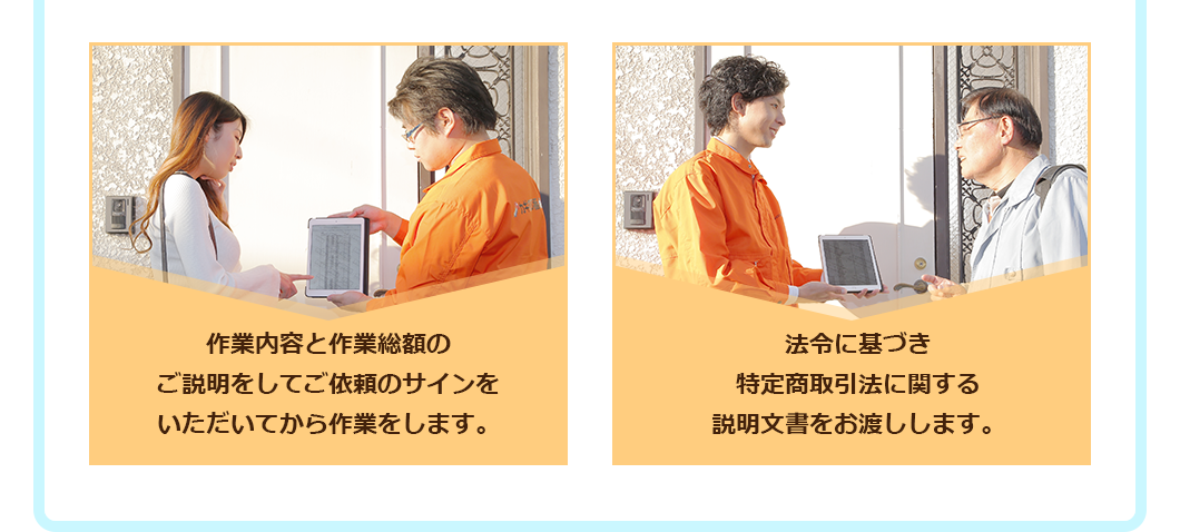 鍵穴を見てみないとピン数、鍵の種類等が判断つかないため、作業前に正確な料金を全国統一料金表でご説明させていただきサインをいただいてから作業をします。